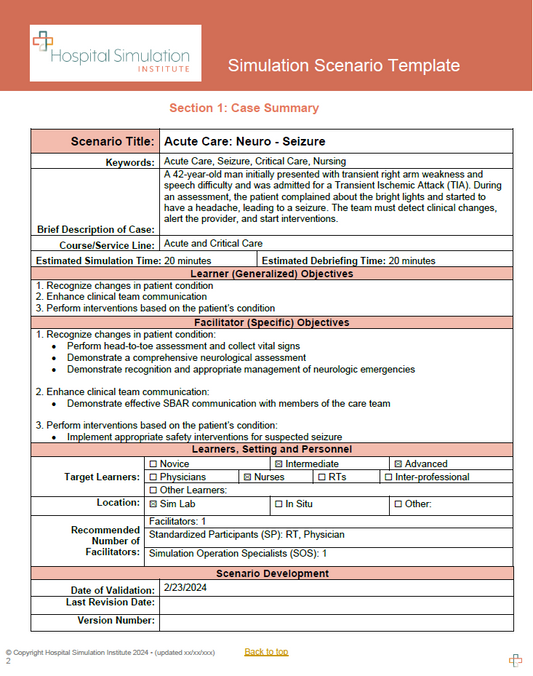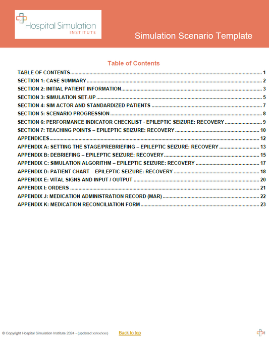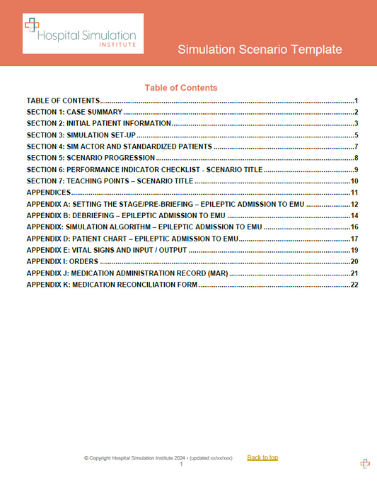 - Simulation Resource Pack: bundled simulation scenario and facilitator video for end-to-end facilitation execution