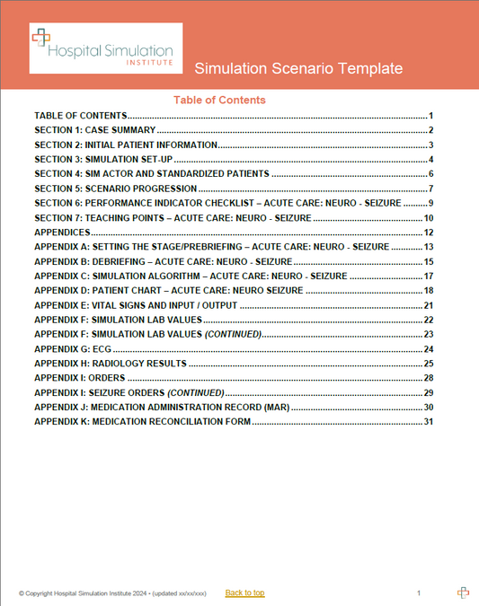 - Simulation Scenarios: specialty-specific scenarios tailored to diverse multi-disciplinary clinical roles (pdf download)