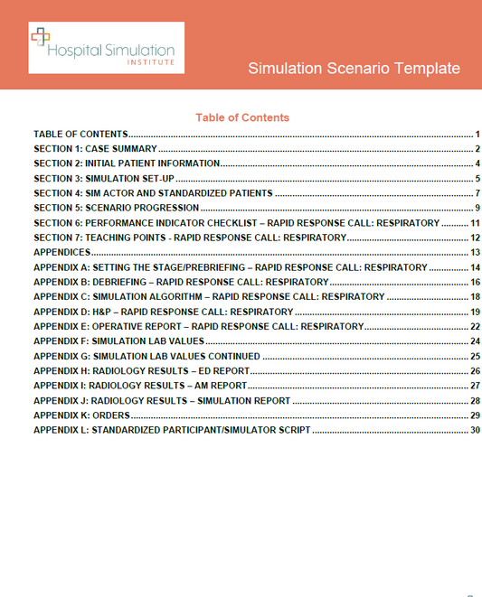 - Simulation Scenarios: specialty-specific scenarios tailored to diverse multi-disciplinary clinical roles (pdf download)