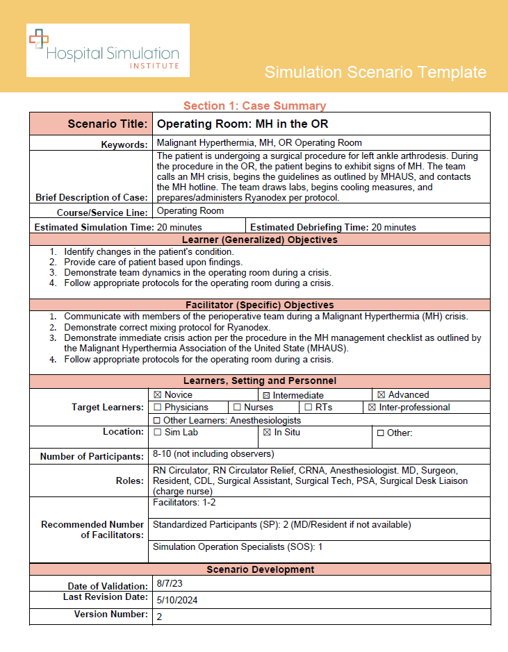 Optimize your OR training with our Malignant Hyperthermia simulation scenario. This ready-to-use scenario provides an accurate replication of real-life cases, promoting efficient and effective learning. This scenario is ideal for teaching critical thinking and decision-making skills, utilizing a formal and objective approach.